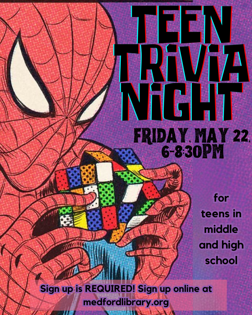 Teen Events We have a new sign up system! Registering for a program does not guarantee that you are officially signed up. Once library staff reviews your registration, you will get an email confirmation or an email letting you know that you are on the waitlist. Special Events March 12: Sign UpMarch 19: Sign UpMarch 26: Sign Up April 17: Sign up April 22: Sign upPermission Slip April 24: No sign up needed Repeating Monthly Programs April 8: Sign up March 13: No sign up needed! March 17: Sign up March 18: No sign up needed! March 19: Sign Up March 30: No sign up needed! April 7: Sign up April 7: Sign up April 13: No sign up needed April 14: Sign Up April 16: Sign up S.T.E.A.M. Programs March 19: Sign up March 26: Sign up April 6: Sign upSign ups open March 1! April 16: Sign upSign ups open March 1! April 21: Sign upSign ups open March 1! April 22: Sign upSign ups open March 1! April 23: Sign up April 24: Sign up Book Clubs: March 11: Sign up March 24: Sign Up Encouraged 2026 Teen Reading ChallengeJanuary 1- May 31 March 31: Sign Up March 26: No sign up needed If you have any questions, please contact Nicole in the Teen Section: nperrault@minlib.net | 781-475-5735